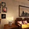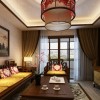 客厅的整体装饰奢华感比较突出,白色的石膏板顶面装饰加上实木雕刻的边框设计提升了顶面装饰感的复杂性,圆形的红色雕刻大吊灯的使用瞬间把客厅的中式气息和温馨气氛展现到最极致,实木地板的地面装饰增加了空间的舒适性能,实木雕刻的整体沙发家具装饰和金黄色的椅垫更加的把富丽堂皇和贵族的气息展现得更加的充分,电视背景墙和电视柜的存在更好的把中式的装修气氛浓郁的展现出来。