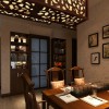 餐厅的位置就在客厅的旁边,餐厅的装饰比较明亮和具有现代时尚感气息的,实木的整体家具的搭配和实木框架的吊灯起到相互衬托的作用,墙面上一排照片墙的存在更是为餐厅的气氛营造出更多的温馨和浪漫感。