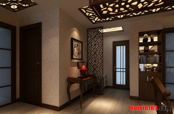 君安小区—100平米—三居室—新中式装修效果图—走廊