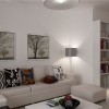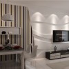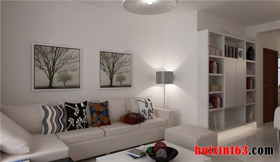 整个空间的装修采用的是洁白装饰贯穿的作用,客厅的墙面地面以及顶面都是利用白色的装饰色彩进行打造的,给人的延伸和明亮简洁氛围比较浓烈,电视背景墙的设计采用嵌入式的装饰打造出更多的立体造型,一个黑色的电视柜的存在给人的视觉带来很好的冲击力,白色的沙发和各异的抱枕让装饰感更加的突出,两幅钻石画的存在瞬间提升了主人的生活品味和对艺术的向往。